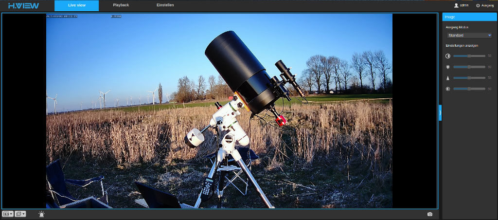 Zusätzlich habe ich eine LAN-Kamera auf ein Stativ geschraubt. Ich habe damit vom beheizten Arbeitszimmer aus die ganze Zeit die Montierung im Blick und kann auf alles schnell reagieren: Meridian-Flip, Wildschweine, Bären , Wölfe, ...
