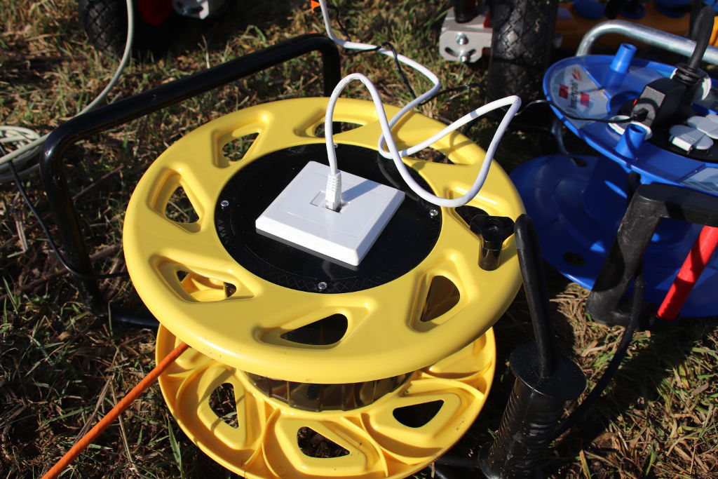 Unser WLAN reicht leider nicht bis auf unser Beobachtungs-Feld. Ich schicke deshalb das LAN per Powerline-Adapter bis in die äußerste Ecke unserer Ställe. Zusätzlich habe ich mir eine LAN-Kabeltrommel angeschafft. So benötige ich keine Mobilverbindung, kein VPN und die Verbindung ist viel stabiler als eine reine Powerline-Verbindung über die lange Strecke: