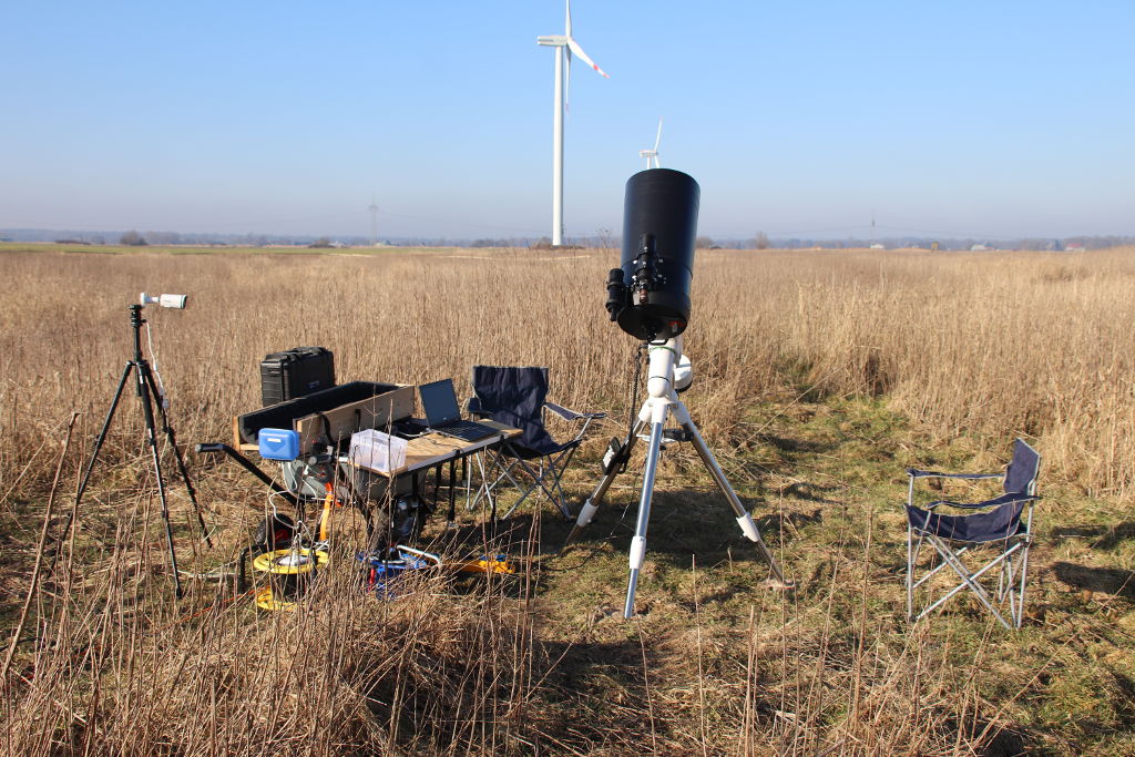 Um mein Astro-Equipment auch außerhalb meiner festen Observatorien nutzen zu können, habe ich mir eine mobile Lösung ausgedacht. Wir haben z.B. eine „Hauskoppel“ in deren Mitte ich fast 360Grad Rundumblick habe.